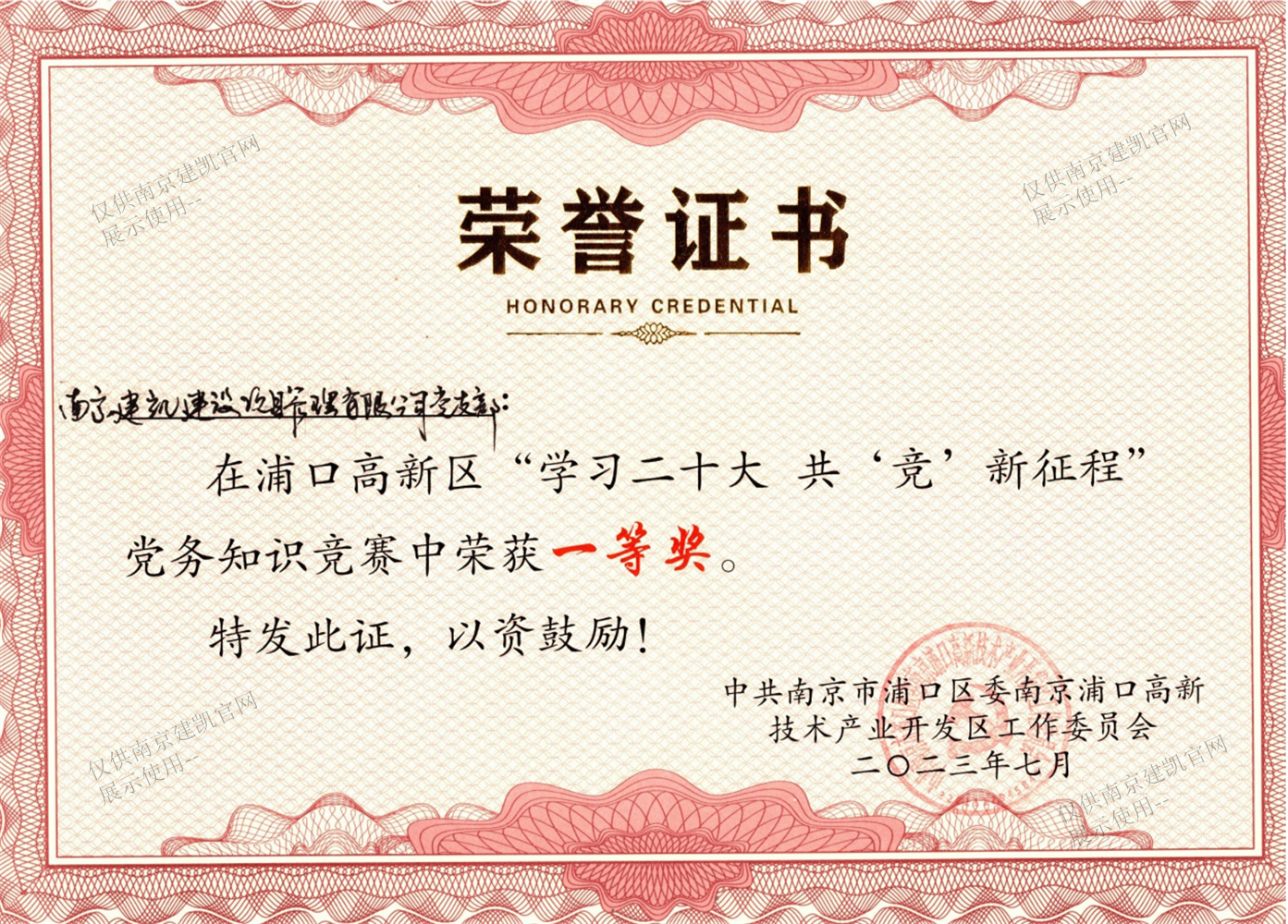 熱烈祝賀我司黨支部榮獲浦口高新區“學(xué)習二十大 共競新征程”黨務(wù)知識競賽一等獎