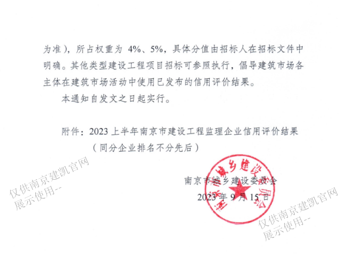 我司監理企業(yè)在2023年上半年南京市建設工程監理企業(yè)信用評價(jià)綜合得分88.30分