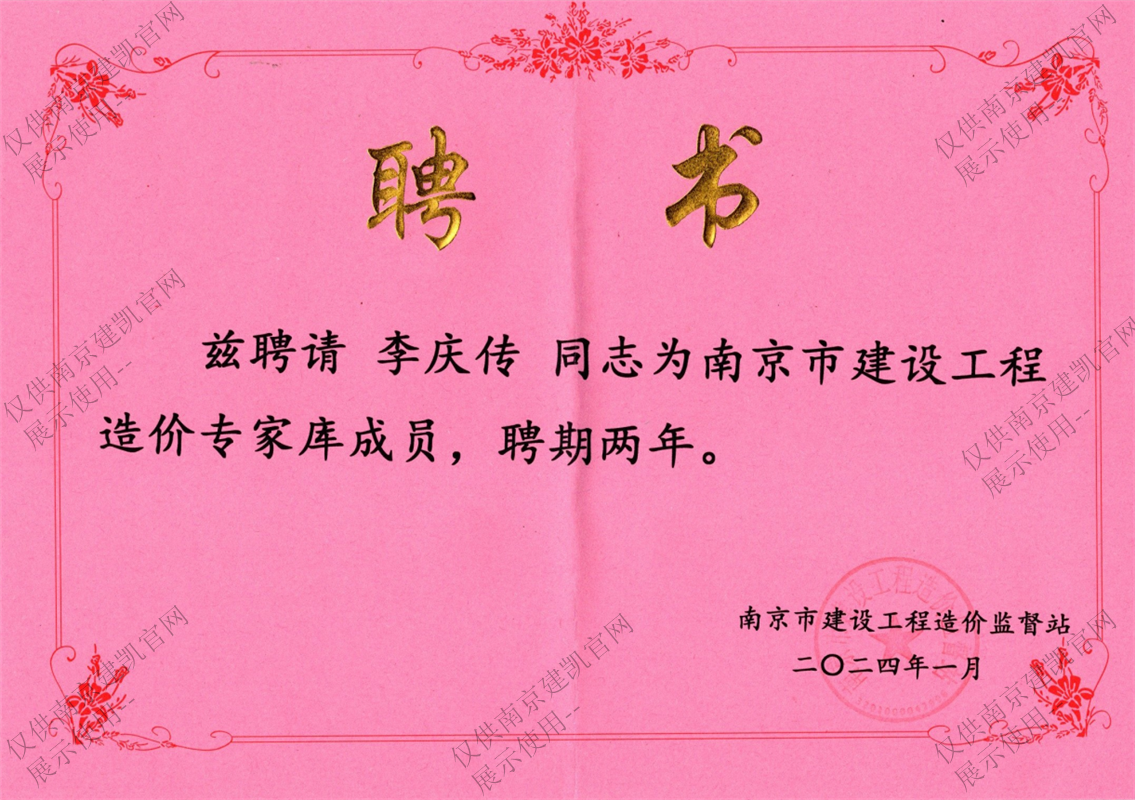 恭喜我司李慶傳同志入選“南京市建設工程造價(jià)專(zhuān)家庫成員”