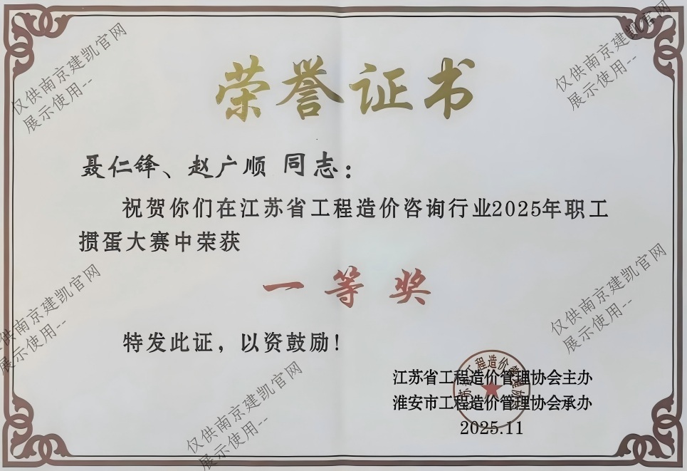 熱烈祝賀我司在江蘇省工程造價(jià)咨詢(xún)行業(yè)2025年職工摜蛋大賽中榮獲一等獎