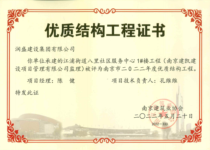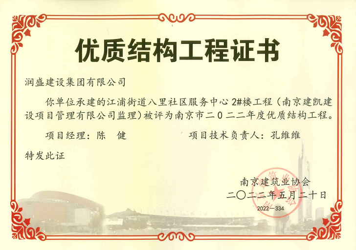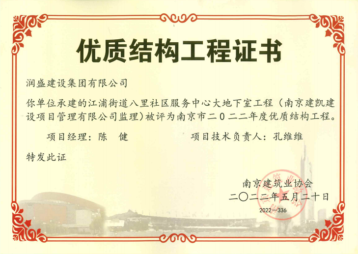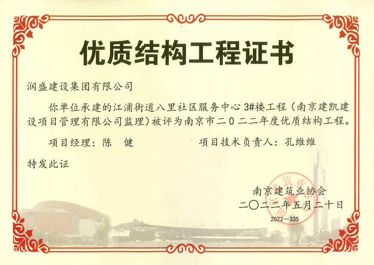 (2022年05月20日)江浦街道八里社區服務(wù)中心項目榮獲《南京市2022年度優(yōu)質(zhì)結構工程》