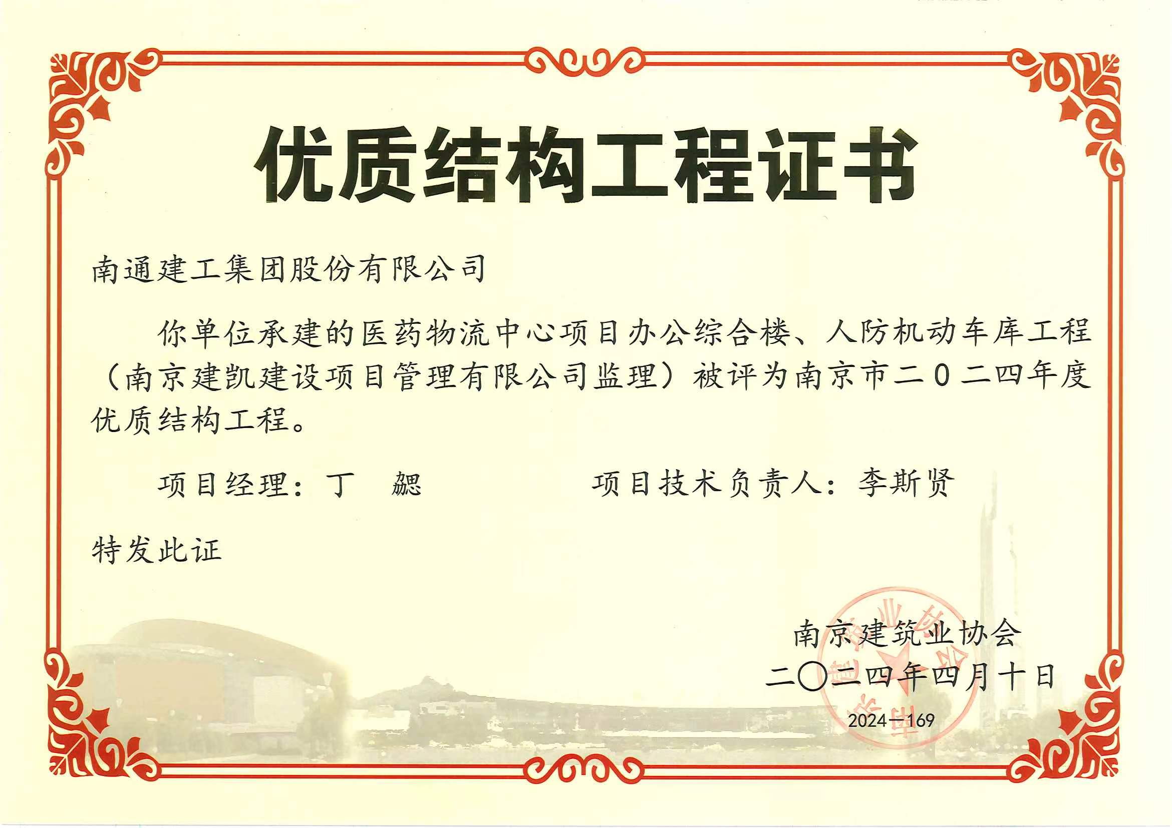 醫藥物流中心項目辦公綜合樓、人防機動(dòng)車(chē)庫工程榮獲“南京市優(yōu)質(zhì)工程獎”
