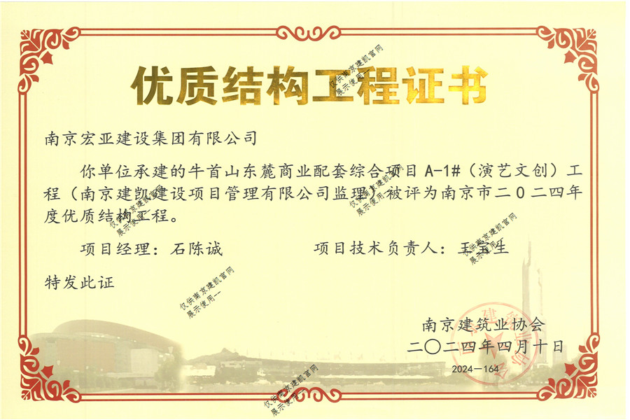 牛首山東麓商業(yè)配套綜合項目A-1#(演藝文創(chuàng ))工程榮獲“南京市優(yōu)質(zhì)工程獎”