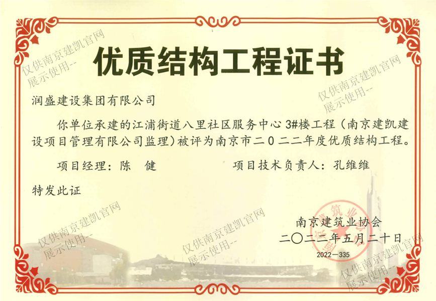 南京市二0二二年度優(yōu)質(zhì)結構工程(江浦街道八里社區服務(wù)中心3#樓工程)