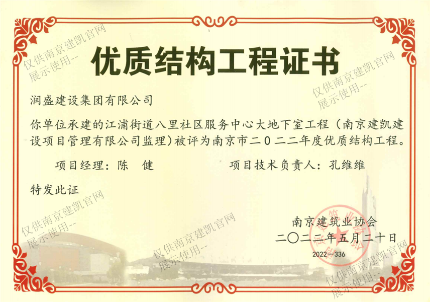 南京市二0二二年度優(yōu)質(zhì)結構工程(江浦街道八里社區服務(wù)中心大地下室工程)