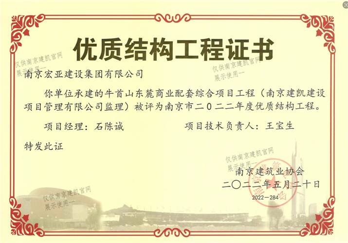 南京市二0二二年度優(yōu)質(zhì)結構工程(牛首山東麓商業(yè)配套綜合項目工程)