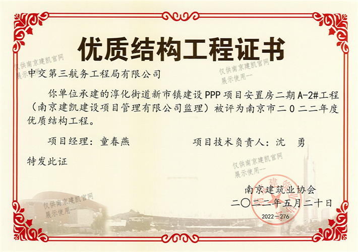 南京市二0二二年度優(yōu)質(zhì)結構工程(淳化街道新市鎮建設PPP項目安置房二期A(yíng)-2#工程)