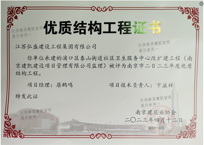 南京市二0二三年度優(yōu)質(zhì)結構工程(浦口區泰山街道社區衛生服務(wù)中心改擴建工程)