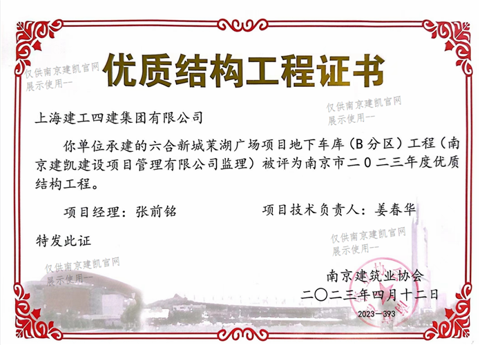 南京市二0二三年度優(yōu)質(zhì)結構工程(六合新城茉湖廣場(chǎng)項目地下車(chē)庫工程)