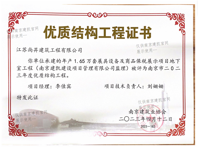 南京市二0二三年度優(yōu)質(zhì)結構工程(年產(chǎn)1.65萬(wàn)套展具設備及商品保稅展示項目地下室工程)