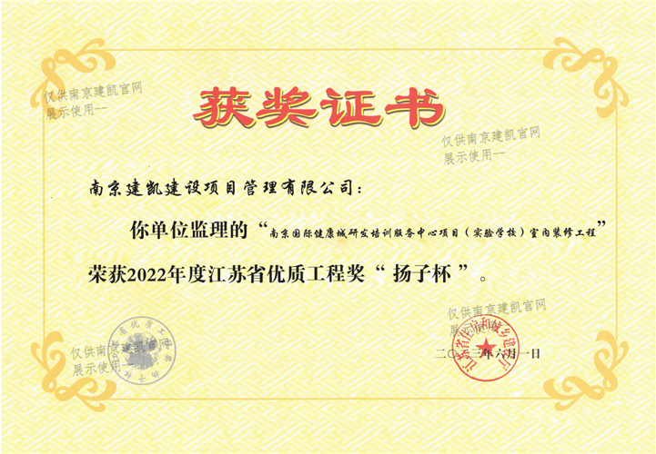 2022年度江蘇省優(yōu)質(zhì)工程獎“揚子杯”