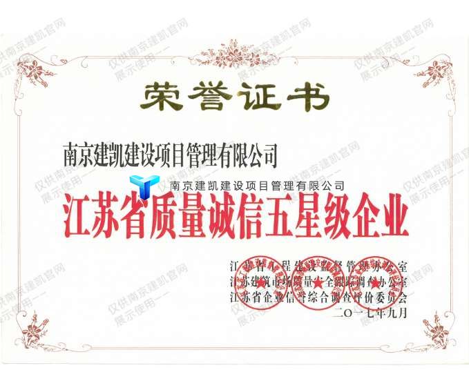 江蘇省質(zhì)量誠信五星級企業(yè)