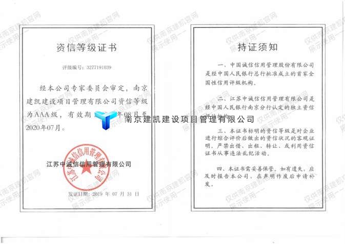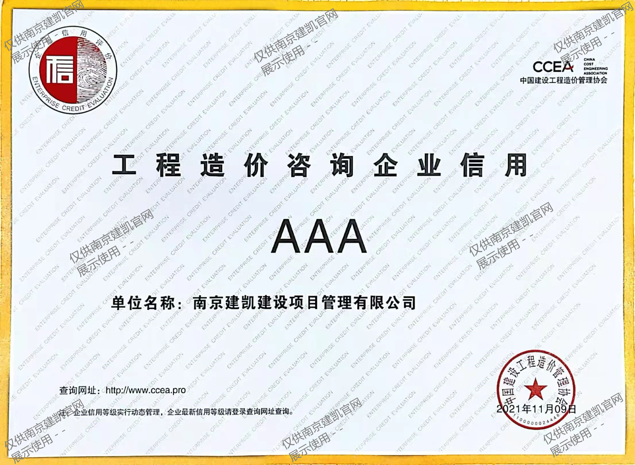 工程造價(jià)咨詢(xún)企業(yè)信用“AAA”等級證書(shū)