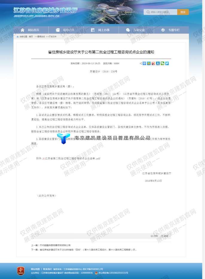 江蘇省住房城鄉建設廳公布全過(guò)程試點(diǎn)企業(yè)的通知