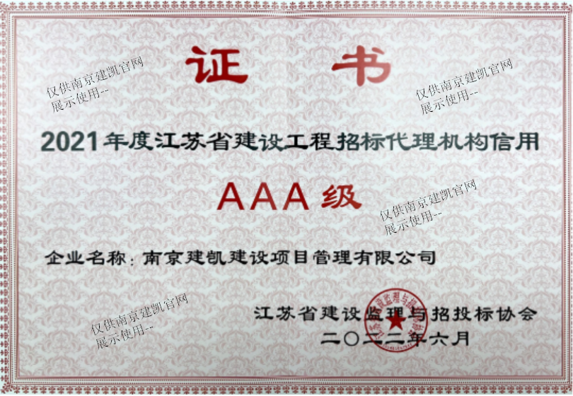 2021年度江蘇省建設工程招標代理機構信用“AAA”等級認證