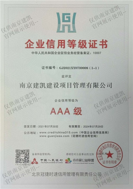 企業(yè)信用等級證書(shū)AAA級